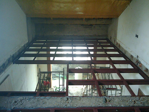 1:鋼混結構:鋼結構骨架做好后,上面鋪鋼板或者樓承板,最后澆筑混凝土(混凝土需達到一定標號,混凝土澆筑前鋼板上最好鋪設鋼筋網)。